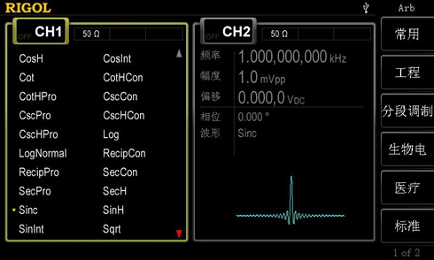 正弦波,方波,锯齿波,任意波(DC除外) |