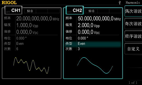 正弦波、方波、锯齿波、脉冲波、噪声、谐波 |