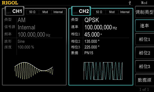 AM、FM、PM、ASK、FSK、PSK、BPSK、QPSK、3FSK、4FSK、OSK、PWM |