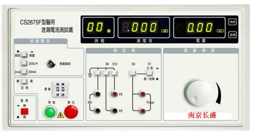 泄漏测试仪 ,输出电压0-250V(可调)(AC),漏电流测试范围 0-2mA/20mA,时间1-99s,±5%,隔离变压器容量:500VA。 |